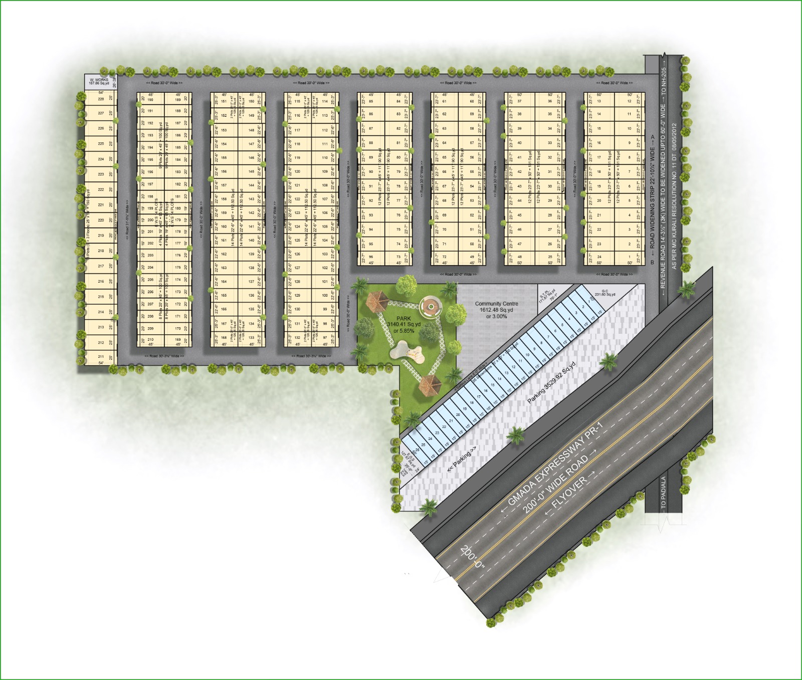- Plot Sizes: 100, 112, 118, 131 sq. yards